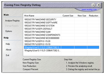 Eusing Free Registry Defrag se encarga de ello, reorganizando las entradas del Registro para que mejore su rendimiento y con ello la velocidad de Windows.