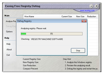 Es muy fácil de usar. Eusing Free Registry Defrag analiza el Registro y muestra los elementos desordenados, que podrás desfragmentar al instante y tras reiniciar el PC.